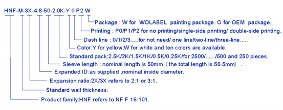 HNF-M manchons d'identification est un tubes thermorétractable aplatie conçue pour l'identification de fils et câbles harnais. Il peut également être utilisée pour les applications où des caractéristiques de danger de feu limitée sont nécessaires. Le matériau sans halogènes couplé avec peu de fumée et les émissions de fumées toxiques faibles font de ce produit parfaitement utilisé dans les espaces clos comme que les transports en commun, de la marine et des installations industrielles. Norme NF F16-101 rencontre, SAE-AS 81531, MIL-STD-202F / Méthode 215J, RoHS, etc.